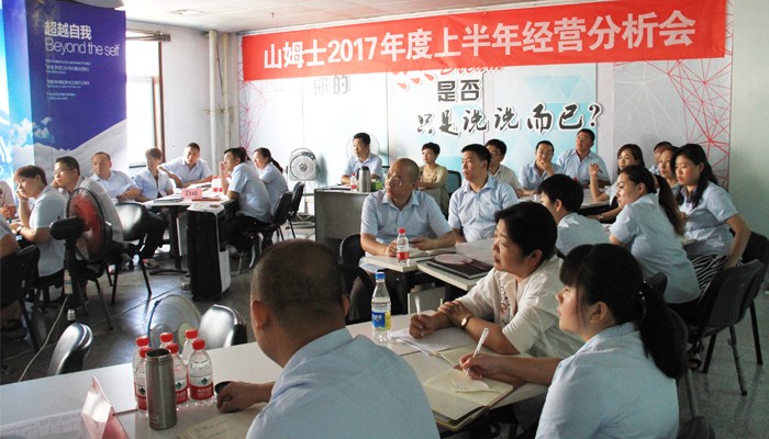 2017年7月12日上午九點(diǎn),在山姆士總部培訓(xùn)室召開了“山姆士2017年上半年經(jīng)營分析會(huì)”。此次大會(huì)通過對(duì)上半年工作的總結(jié)分析,更加明確了2017年下半年的工作重點(diǎn)和任務(wù)。