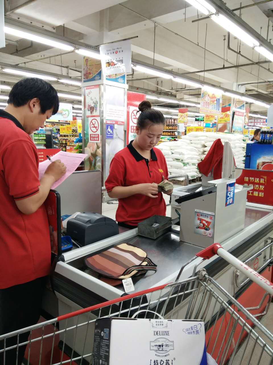 為了更好的激勵員工,提高員工的工作積極性,傳遞正能量,山姆士超市于9月14日、15日在各門店對前臺部收銀組進行了技能比武競賽活動,針對“收銀結賬”、“清點營業款”、“快速點鈔”三方面進行了考核。在這場比武中,各位參賽者都展示出了自己最好的狀態,自身較強的業務能力。