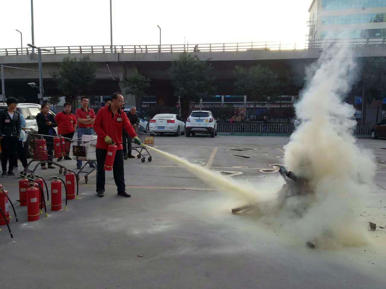 為進一步強化員工消防安全教育,增強全民消防意識,提高抗擊突發事件的應變能力,正確掌握使用滅火器的方法。201792122日,山姆士建南店組織了以“消防你我他  安全靠大家”為主題的秋季消防演練。
